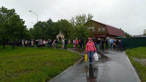 3 июня в день памяти Владимирской иконы Божией Матери по благословению настоятеля Храма Рождества Христова протоиерея Николая Уловича была организована раздача кисло-молочной продукции малоимущим, инвалидам и многодетным семьям Южного Бутова и других районов Москвы и Московской области.