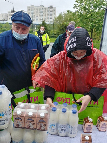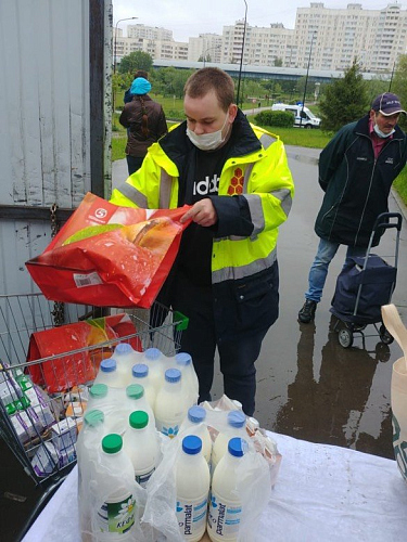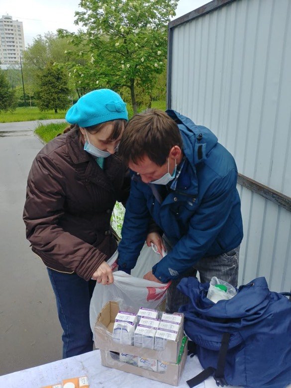 Продукцию раздавали волонтеры социальной службы храма на улице, с учетом всех необходимых мер безопасности.
