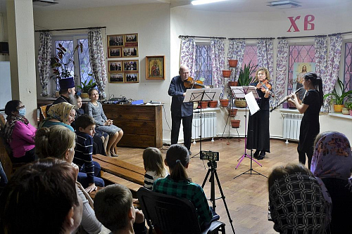 11 апреля в Воскресной школе "Исток" храма Священномученика Ермогена в Зюзине состоялся благотворительный вечер из цикла "На встречу с музыкой". В этот раз состоялась встреча с классической музыкой в исполнении солистов Большого симфонического оркестра им П.И.Чайковского