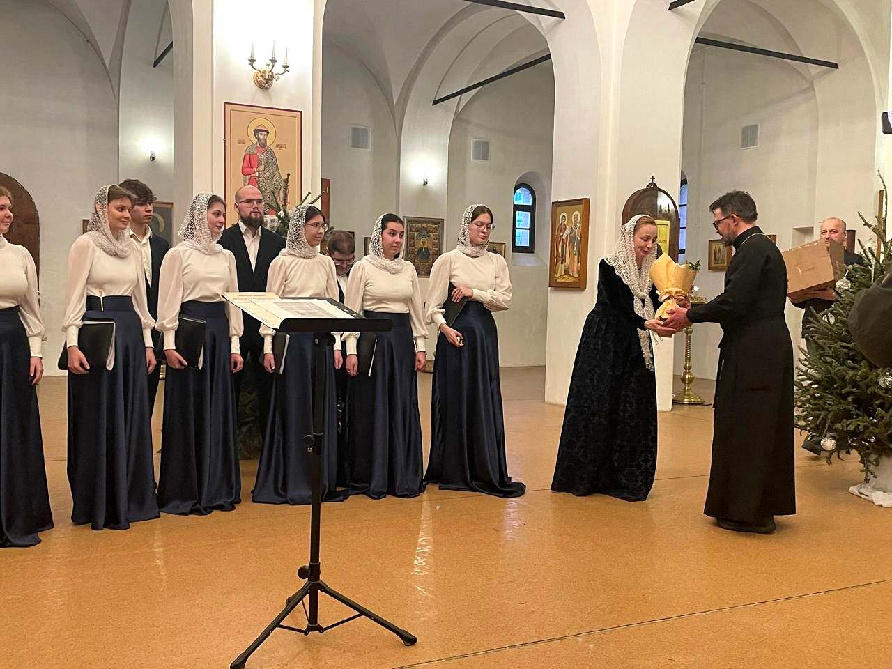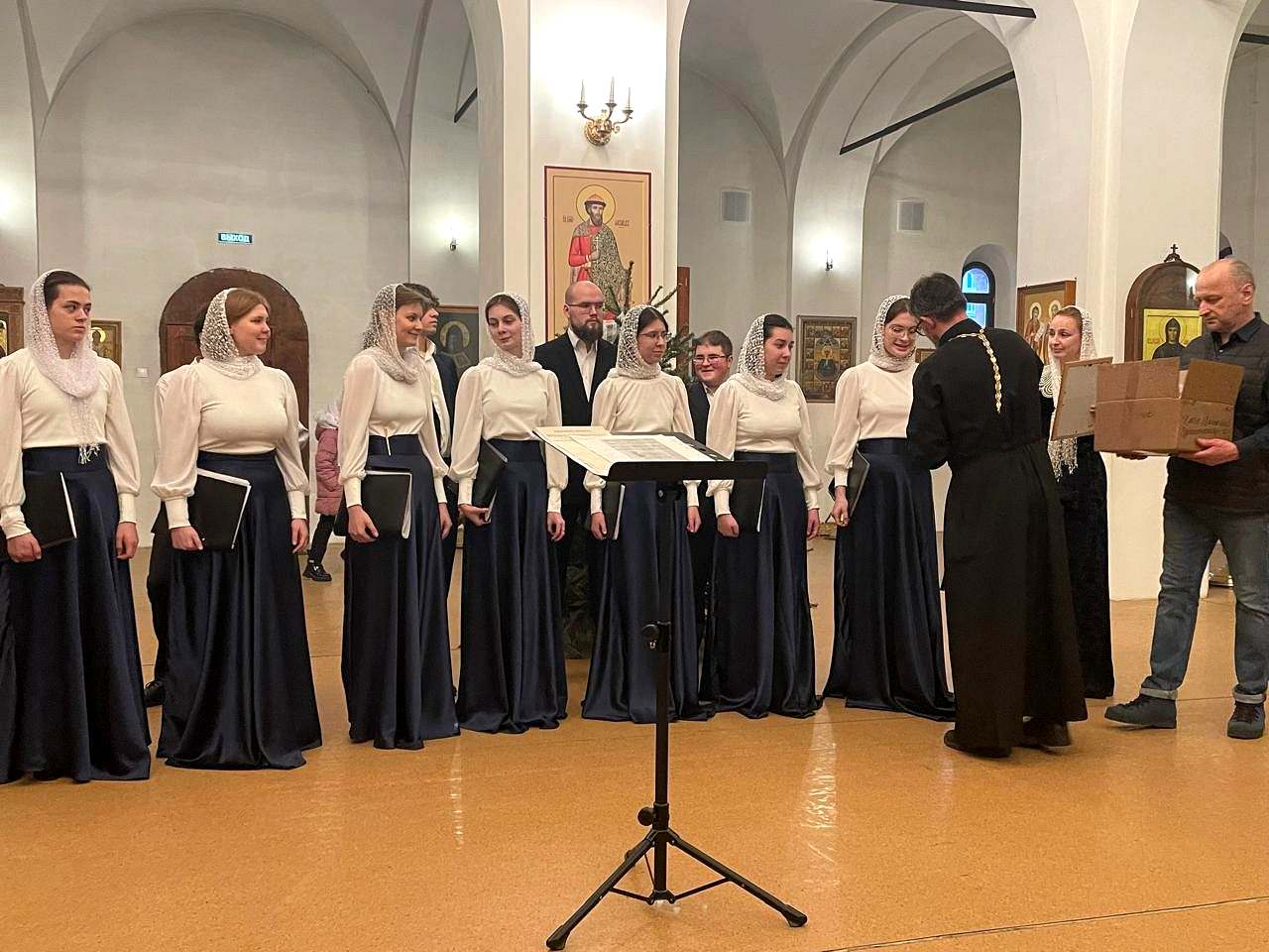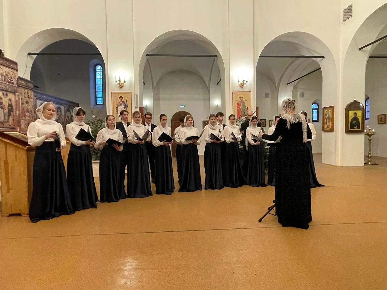 художественным руководителем и дирижером, которого является Елена Сидорычева. В ходе выступления звучали не только Богослужебные песнопения, но и колядки, как общеизвестные, так и собственного сочинения учащихся.