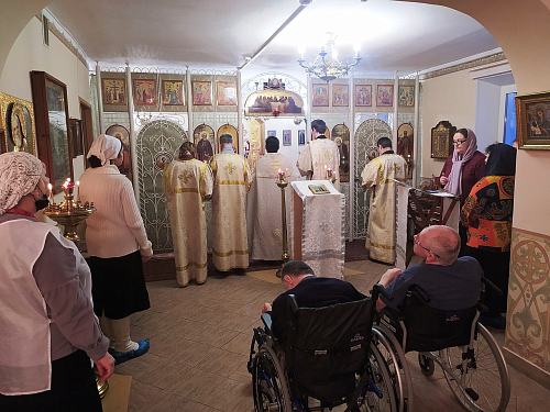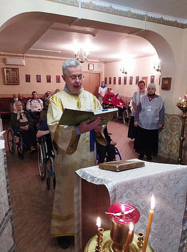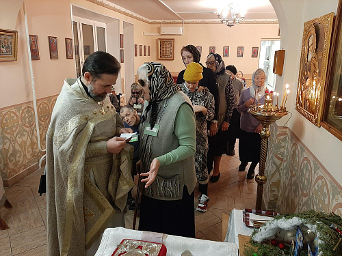 15 января 2024 года в храме преподобного Серафима Саровского при Геронтологическом центре «Теплый Стан», приписанном к храму Иверской иконы Божией Матери в Беляеве, настоятель иерей Игорь Краев совершил Божественную Литургию Престольного праздника.