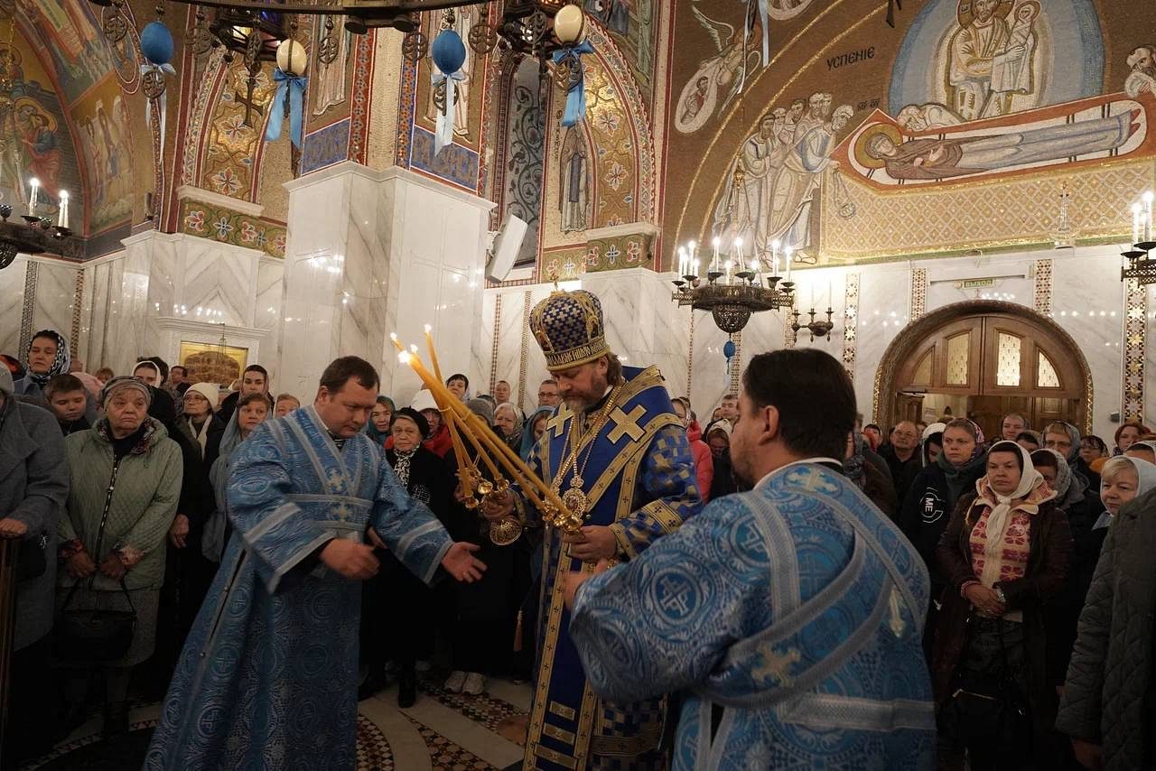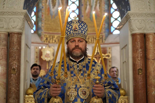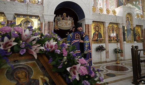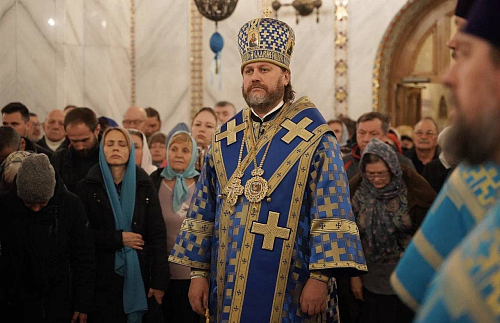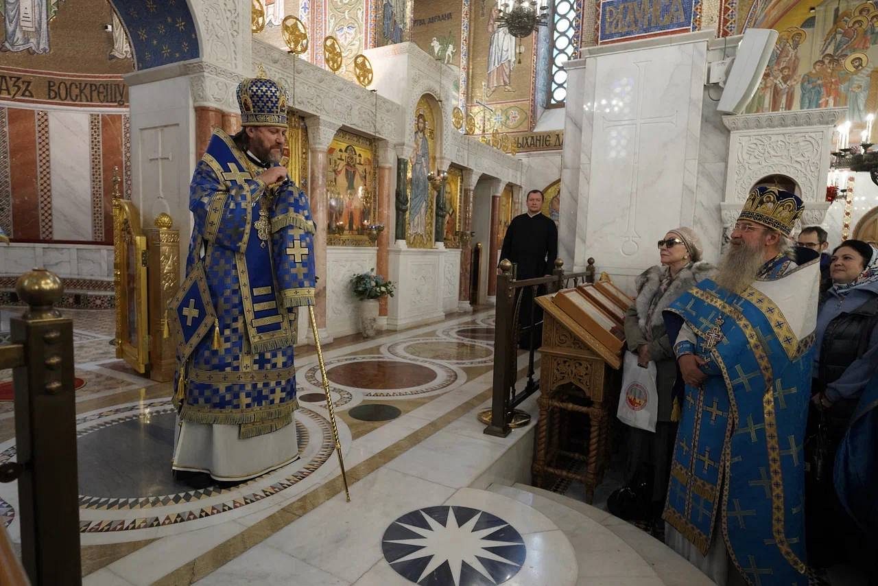 В завершение богослужения был совершен крестный ход и славление празднику Покрова Пресвятой Богородицы, после чего архиепископ Фома обратился к духовенству и прихожанам с приветственным словом.