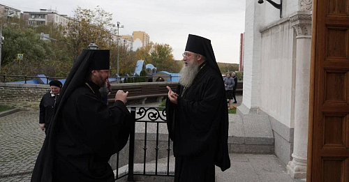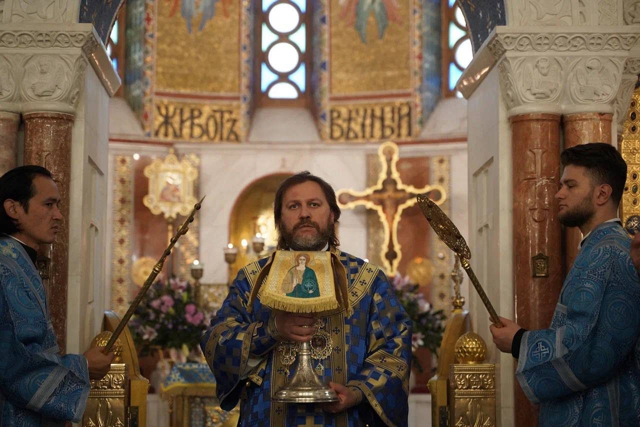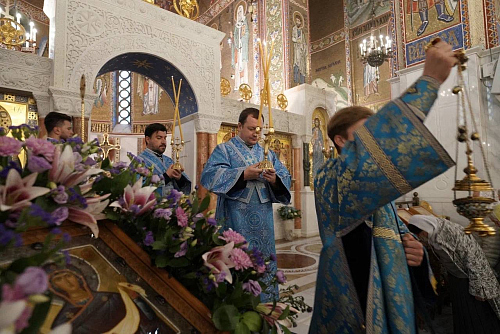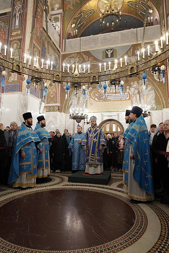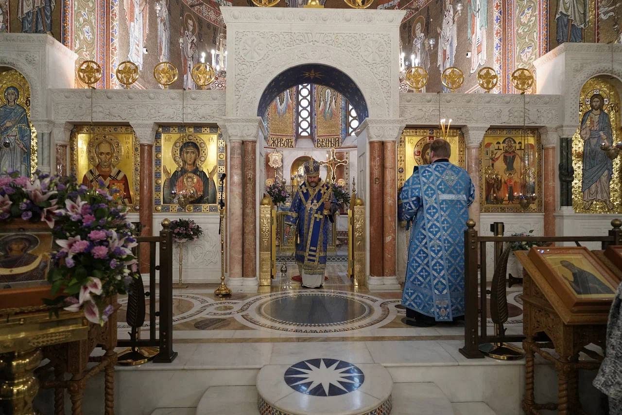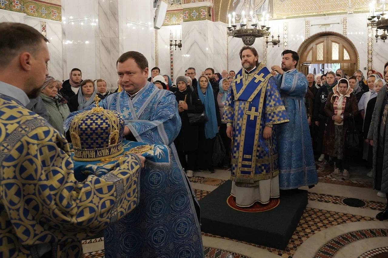 В завершение богослужения был совершен крестный ход и славление празднику Покрова Пресвятой Богородицы, после чего архиепископ Фома обратился к духовенству и прихожанам с приветственным словом.