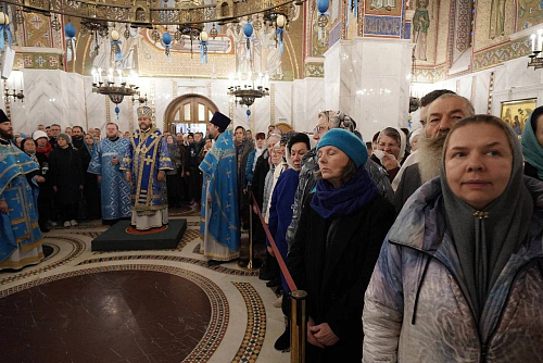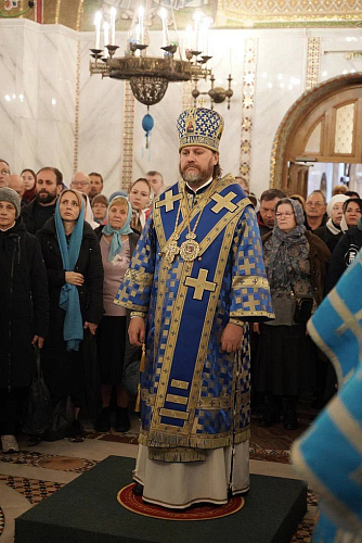 Его Высокопреосвященству сослужили настоятель храма архимандрит Мелхиседек (Артюхин), иерей Кирилл Сушков, настоятель Георгиевского храма пос. Фирсановкаи клирики храма иерей Максим Куимов, иерей Алексей Котельников, иерей Сергий Денисюк, иерей Сергий Романов, иерей Роман Смирнов, иерей Игорь Прасолов.