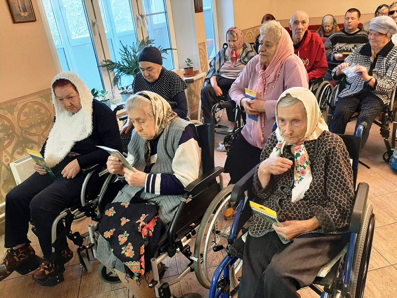 Настоятель поздравил всех с наступающим праздником Рождества Христова. Добровольцы вручили присутствующим подарки.