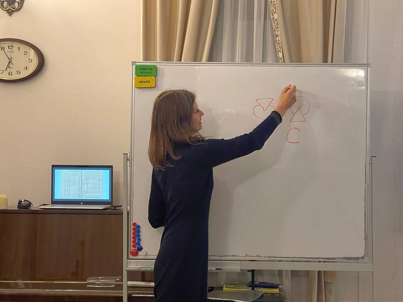 Отвечая на вопрос: «Что создали Кирилл и Мефодий и при чём здесь праславянский?», преподаватель МДА познакомила слушателей с историей жизни равноапостольных братьев, рассказала о двух славянских азбуках – глаголице и кириллице.