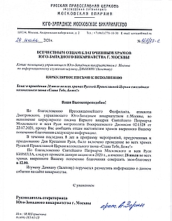 Циркулярное письмо о ежегодном проведении колокольного звона "Слава Тебе, Боже!"