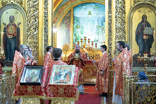 Высокопреосвященнейший владыка совершил молебное пение святителю Алексию. В завершении богослужения митрополит Дионисий передал благословение Святейшего Патриарха Московского и всея Руси Кирилла, а также обратился к присутствующим в храме с архипастырским словом.