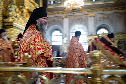 Владыке Дионисию сослужили епископ Мытищинский Феофилакт и настоятель Богоявленского собора епископ Одинцовский и Красногорский Фома.