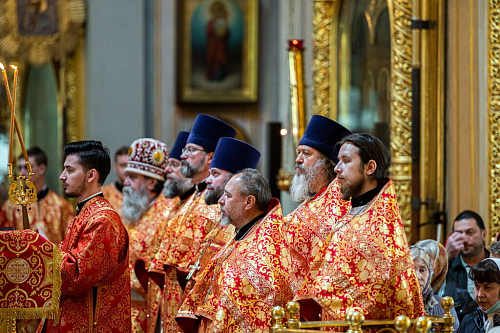 Владыкам сослужили протопресвитер Владимир Диваков, Секретарь Патриарха Московского и всея Руси по г. Москве, архимандрит Алексий (Вылажанин), благочинный Петропавловского округа Московской городской епархии, настоятель храма в честь святых апостолов Петра и Павла в Лефортове, протоиерей Алексий Круглик, настоятель храма Вознесения Господня на Большой Никитской (Малое Вознесение), клирики Собора, московское духовенство и студенты магистратуры Московской Духовной Академии.
