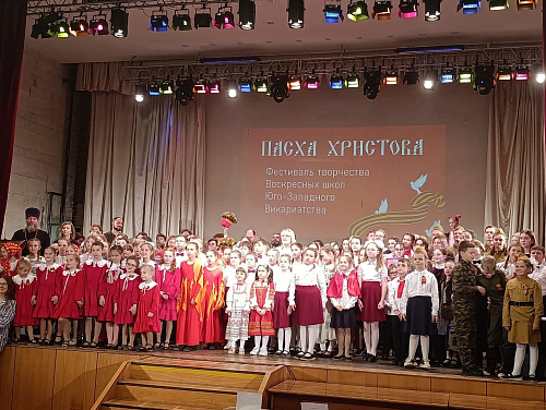 Ребята не первый год принимают участие в Пасхальном фестивале, каждый раз достойно представляя коллектив Воскресной школы на данном мероприятии. В этот раз на сцене префектуры Юго-Западного округа в исполнении хорового коллектива Воскресной школы храма прозвучали песни «К нам пришла весна!», «В лесном краю» и «Земля и солнце, поля и лес».