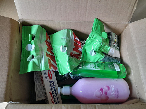 Пожертвованные прихожанами продукты, средства гигиены, детское питание, постельные принадлежности, одежда и обувь были рассортированы и упакованы добровольцами храма и отвезены в Церковный штаб помощи беженцам, расположенный по адресу: улица Николоямская, д. 49, стр.3.