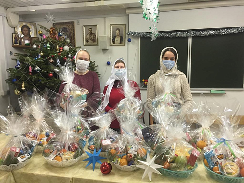 Добровольцы пропели праздничный тропарь и колядки, вручили Рождественские подарочные наборы из продуктов, сладостей и фруктов, а также украшения на елку, сделанные руками детей из Воскресной школы.