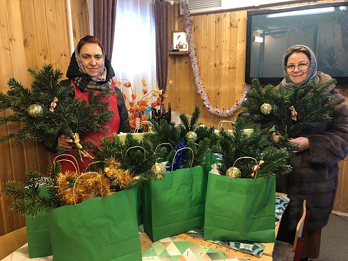 Также подопечным были вручены заранее подготовленные продуктовые наборы и украшенные букеты из веточек ели.