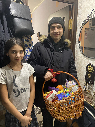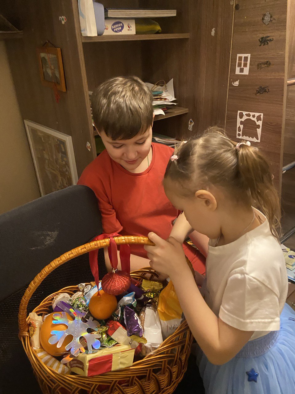 Добровольцы пропели праздничный тропарь и колядки, вручили Рождественские подарочные наборы из продуктов, сладостей и фруктов, а также украшения на елку, сделанные руками детей из Воскресной школы.