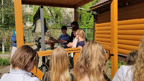 Экскурсию по храму провела педагог Воскресной школы Наталья Александровна Астахова, учащимся школы был представлен мастер-класс по колокольному звону, который показала выпускница Воскресной школы храма Полина Ежова.
