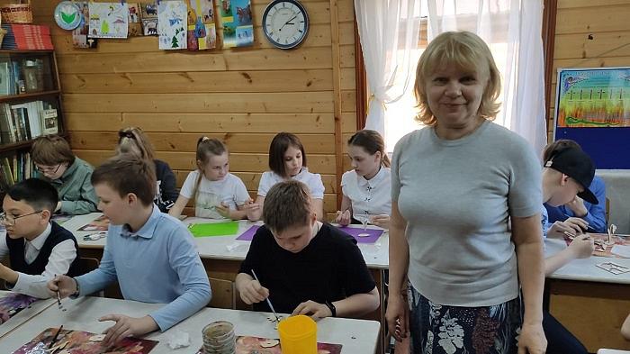 В заключение встречи педагог Воскресной школы по творчеству Светлана Юрьевна Ратинова провела для детей замечательное творческое занятие по росписи подснежника.