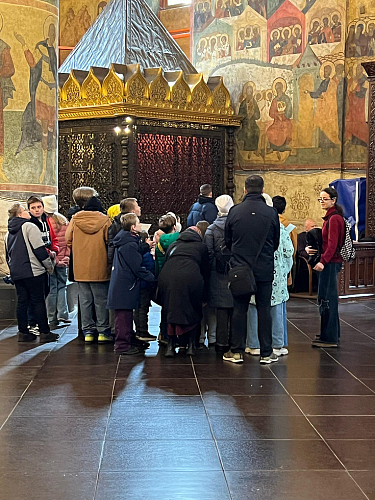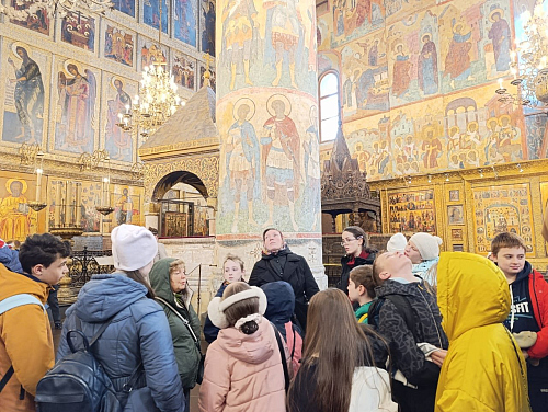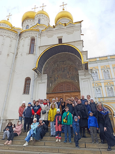 Для учащихся Воскресной школы, их родителей и слушателей Богословских курсов были организованы увлекательные экскурсии, в ходе которых все смогли узнать историю и особенности архитектуры Кремля, Соборной площади и величественного Успенского Собора. Профессиональные экскурсоводы поделились деталями о строительстве Собора, его структуре, росписи и древних иконах и, конечно, о раках с мощами великих русских святителей - Ионы, Иова, Филиппа и многих других.