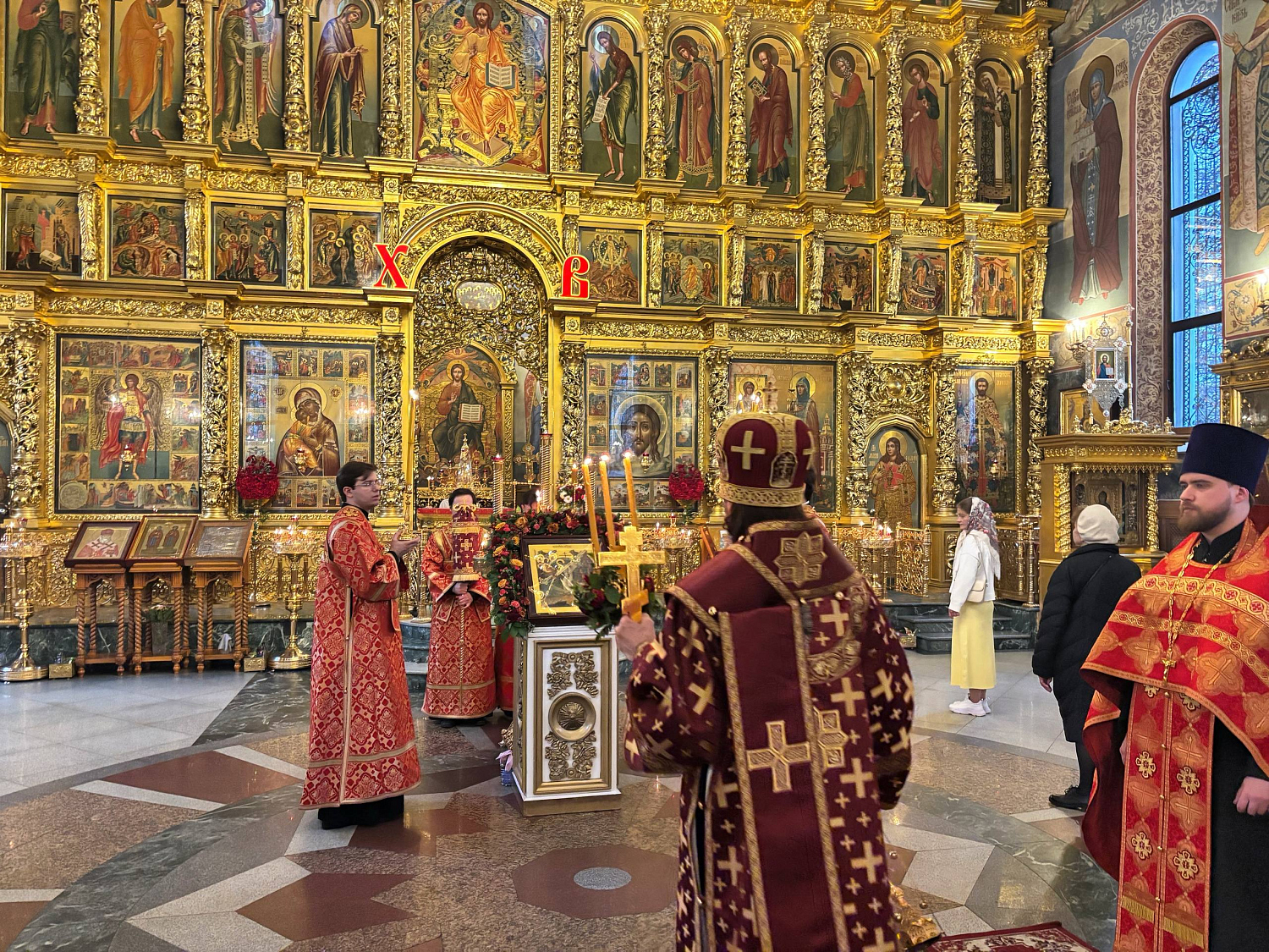 Вечернее богослужение прошло в радостной атмосфере продолжающихся Пасхальных торжеств. Праздничные церковные песнопения исполнил мужской хор храма преподобной Евфросинии.