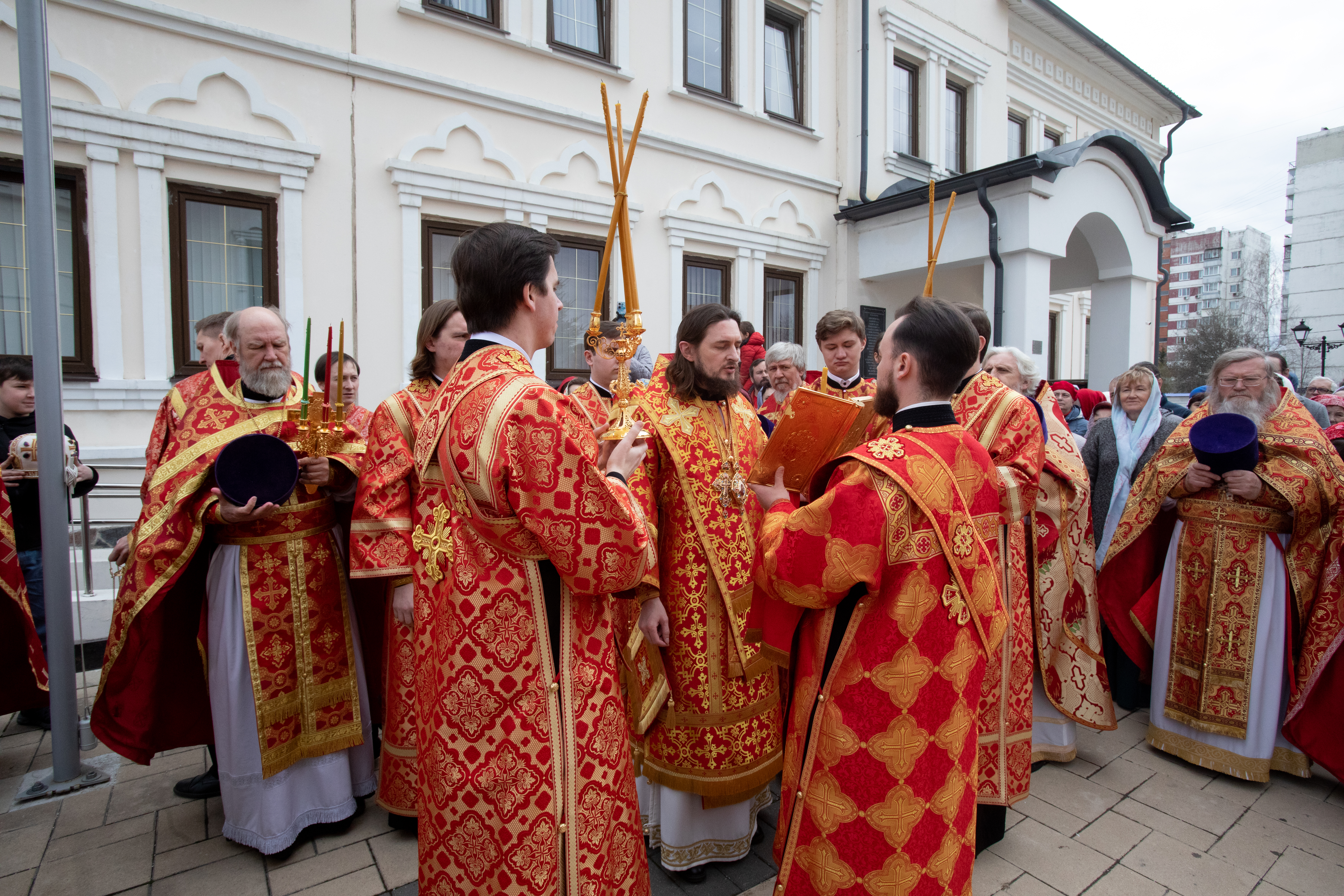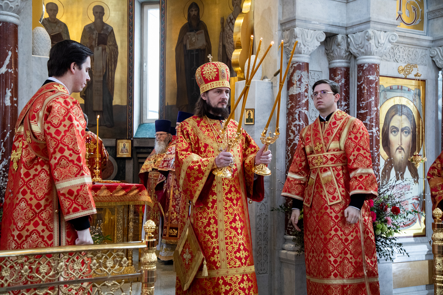 14 апреля 2026 года, во вторник Светлой седмицы, Иверской иконы Божией Матери, епископ Раменский Алексий, викарий Святейшего Патриарха Московского и всея Руси, управляющий Юго-Западным викариатством г. Москвы, возглавил Литургию святителя Иоанна Златоуста в храме святого праведного воина Феодора Ушакова в Южном Бутове.