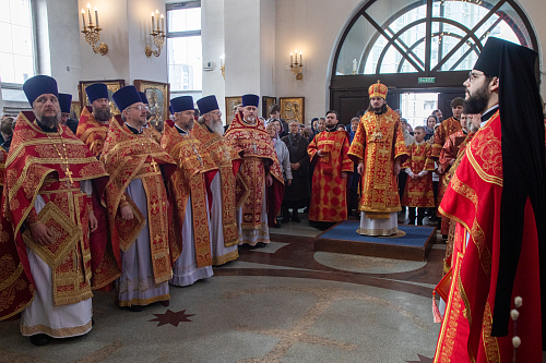 Его Преосвященству сослужили: протоиерей Анатолий Кожа, благочинный Параскево-Пятницкого округа г. Москвы, настоятель храма великомученицы Параскевы Пятницы в Качалове; протоиерей Николай Карасёв, благочинный Андреевского округа г. Москвы, настоятель храма Живоначальной Троицы в Старых Черёмушках; протоиерей Виктор Сандар, настоятель храма святого праведного воина Феодора Ушакова в Южном Бутове; настоятели и духовенство храмов викариатства.