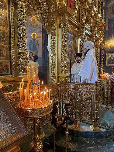 На сугубой ектении были возглашены особые прошения об Отечестве и защитниках его, об утверждении всех в вере, единомыслии, здравии и силе духа. Преосвященнейший Владыка вознёс молитву о Святой Руси.