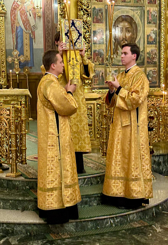 За богослужением пел мужской хор храма преподобной Евфросинии Московской (регент Даниил Кузин). После чтения Евангелия Воскресную песнь («Воскресение Христово видевше...») соборно исполнили все присутствующие.
