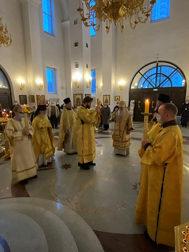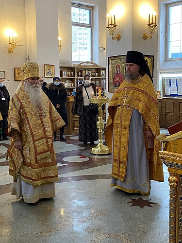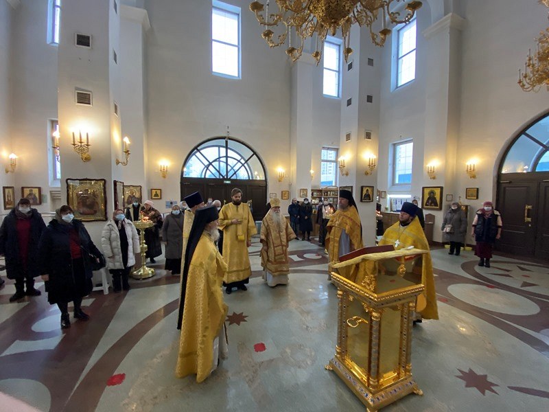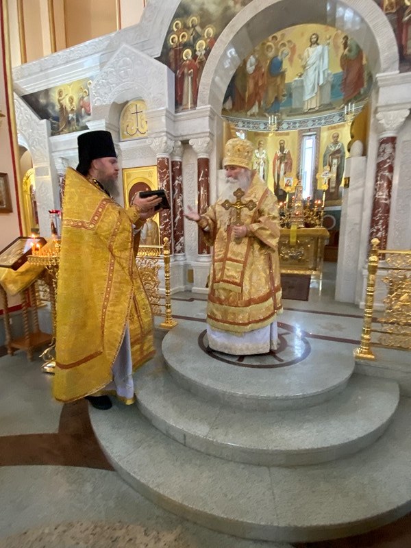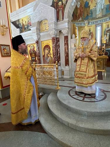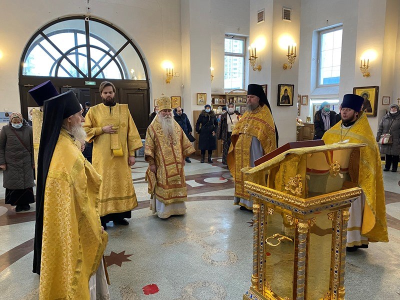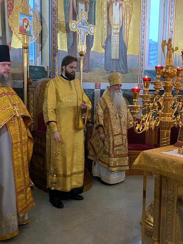 Божественную Литургию возглавил Преосвященный Феофилакт, епископ Дмитровский, викарий Святейшего Патриарха Московского и всея Руси, управляющий Юго-Западным викариатством, наместник Андреевского ставропигиального мужского монастыря г. Москвы.