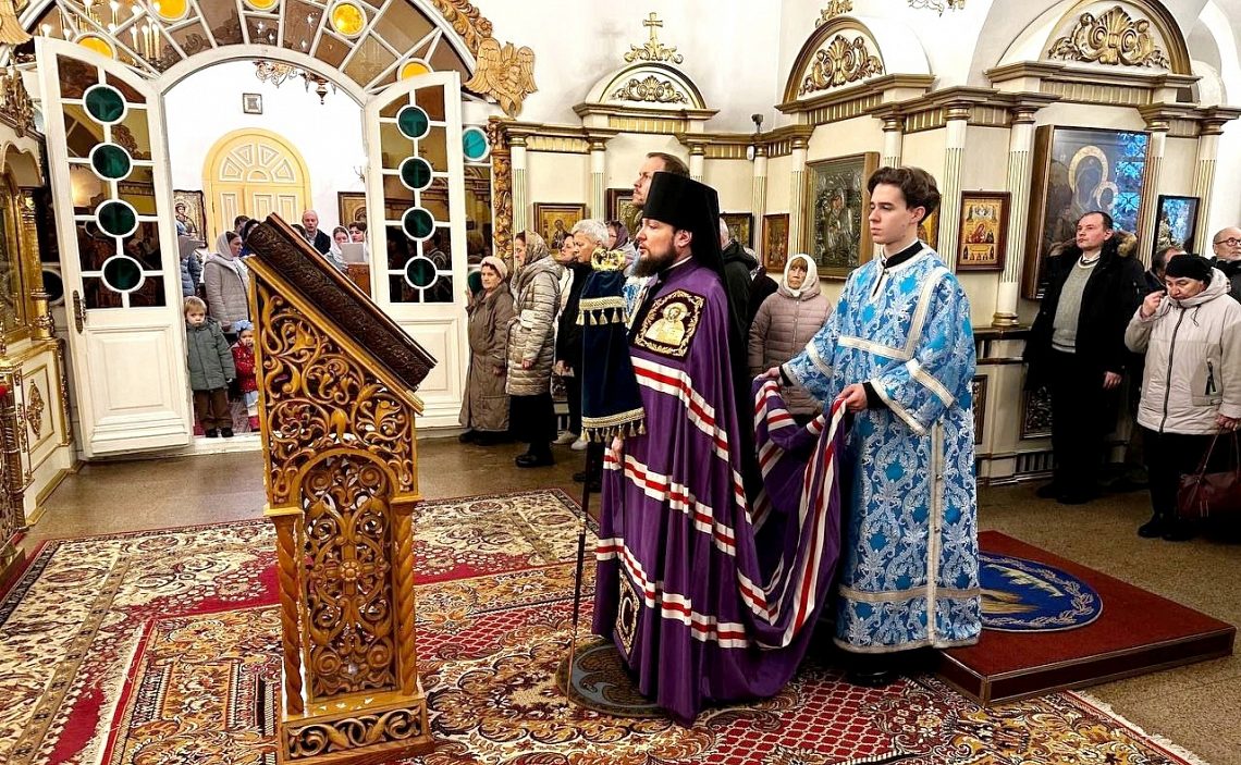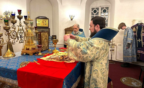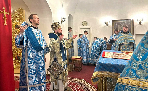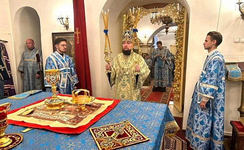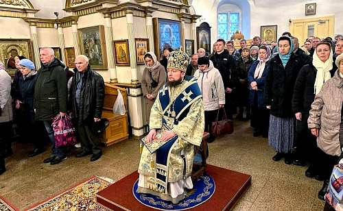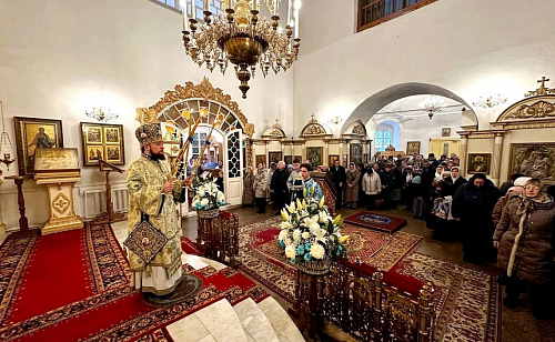 Его Преосвященству сослужили настоятель храма архимандрит Петр (Поляков), клирики прихода протоиерей Димитрий Толкачев и иерей Георгий Пигарь.