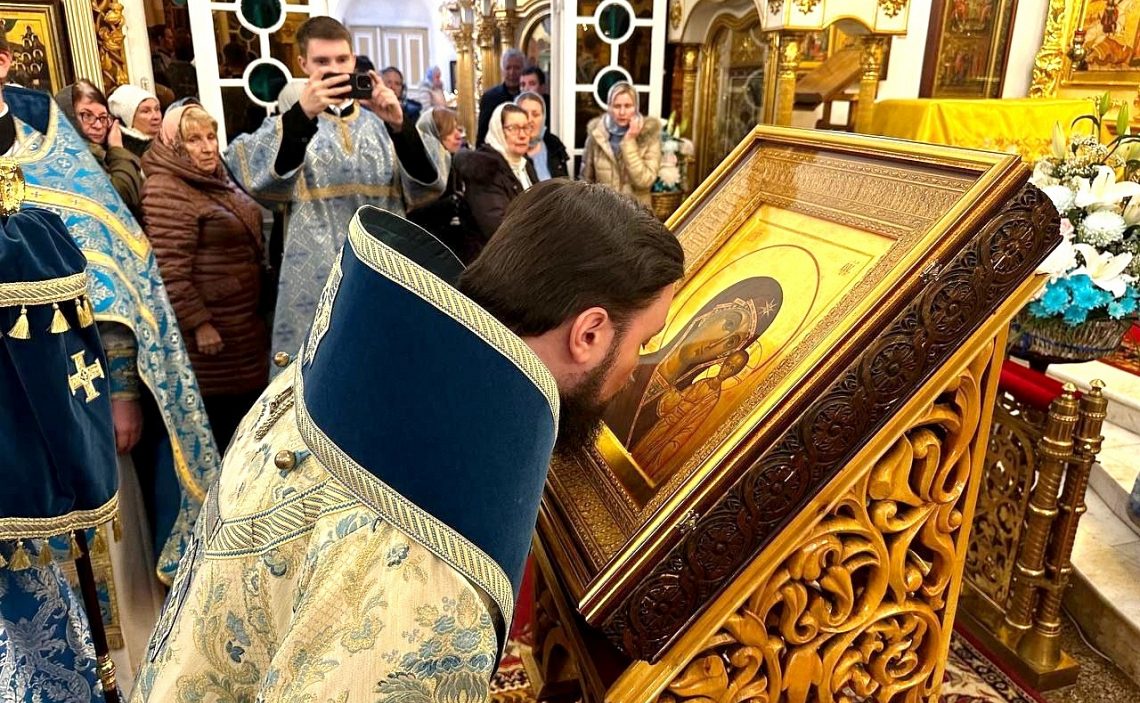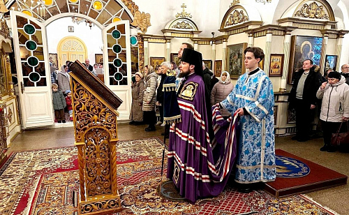 После чтения Евангелия епископ Серафим произнес проповедь, посвященную истории чудотворного Казанского образа, под знамением которого прошло освободительное движение Российского государства в XVII столетии.