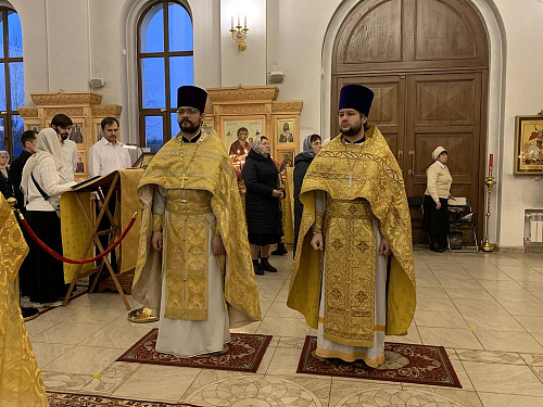 Епископу Феофилакту сослужили: протоиерей Анатолий Кожа, благочинный Параскево-Пятницкого округа г. Москвы, настоятель храма великомученицы Параскевы Пятницы в Качалове; иерей Илия Власов, настоятель храма святого пророка Божия Илии в Северном Бутово; иерей Олег Яньшин, настоятель Патриаршего Подворья при храме святителя Николая Мирликийского в Тушине; иерей Димитрий Самсонов, клирик храма святителя Стефана Пермского в Южном Бутове; протодиакон Игорь Михайлов, клирик Покровского храма Московской Православной Духовной Академии, старший преподаватель кафедры церковно-практических дисциплин, преподаватель Регентской школы при Московской Духовной Академии.