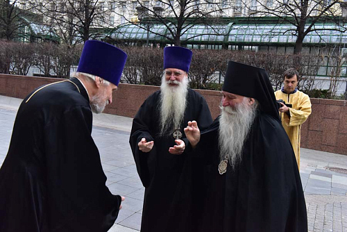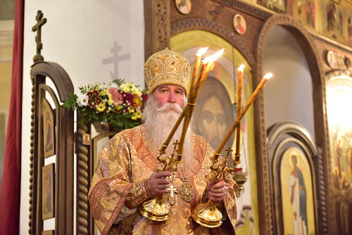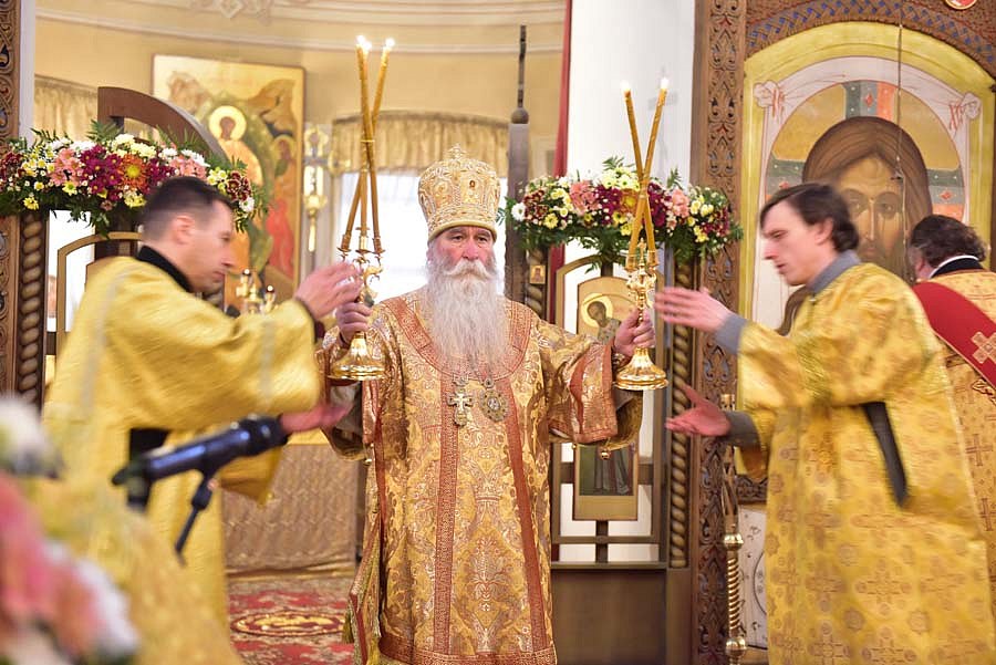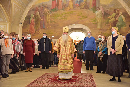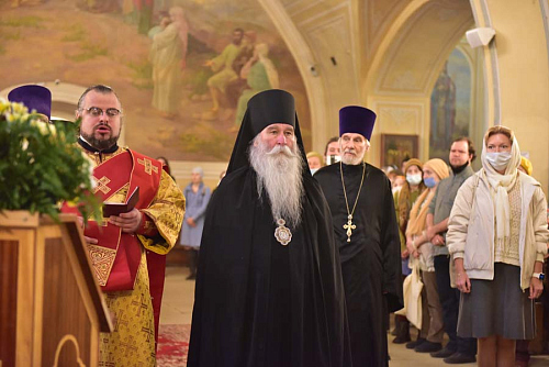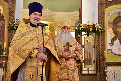 Епископ Феофилакт поздравил отца настоятеля, отца благочинного, братию и прихожан храма с престольным праздником и передал всем собравшимся благословение Его Святейшества, Святейшего Патриарха Московского и всея Руси Кирилла. В приветственном слове Владыка пожелал всем собравшимся чаще обращать свой взор на святых и учиться у них жить на этой земле, будучи Христовыми чадами, послушниками и в какой-то мере апостолами, устремляя всю свою жизнь ко Христу и жизни вечно, - трудясь и не смущаясь, если приходится делать больше, чем кажется посильным, и благодарить Бога за то, что Он даёт нам дыхание, чтобы трудиться во славу Его.