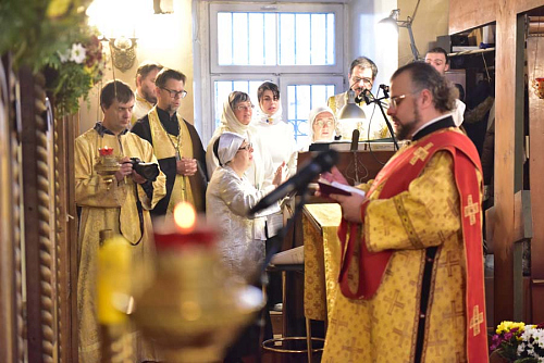 Песнопения Божественной Литургии исполнял хор храма под управлением регента Елены Демидовой.