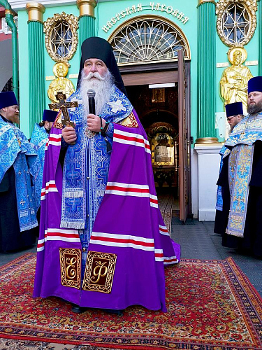 По окончании Богослуженияепископ Феофилакт передал всем собравшимся у Иверской часовни благословение Святейшего Патриарха Московского и всея Руси Кирилла ипоздравление с праздником Иверской иконы Божией Матери.