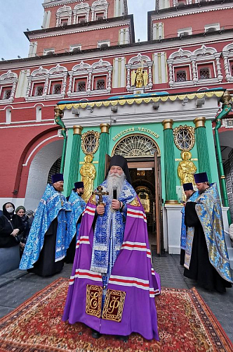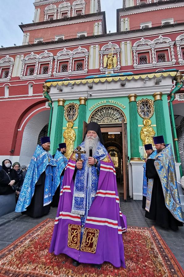 26 октября 2021 года, в день празднования Иверской иконы Божией Матери, епископ Мытищинский Феофилакт, викарий Святейшего Патриарха Московского и всея Руси, управляющий Юго-Западным викариатством г. Москвы, наместник Андреевского ставропигиального мужского монастыря, возглавил Молебное пение в часовне Иверской иконы Божией Матери – Патриаршем подворьеу Воскресенских ворот г. Москвы.