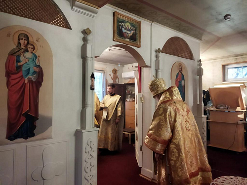 Епископа по традиции встретили торжественным колокольным звоном. Воспитанники Воскресной школы храма вручили владыке Феофилакту букет цветов.