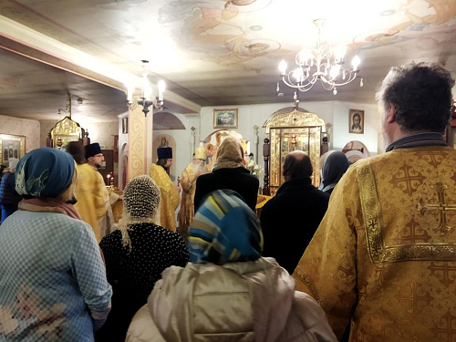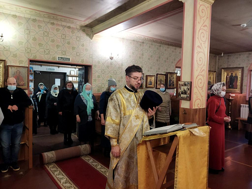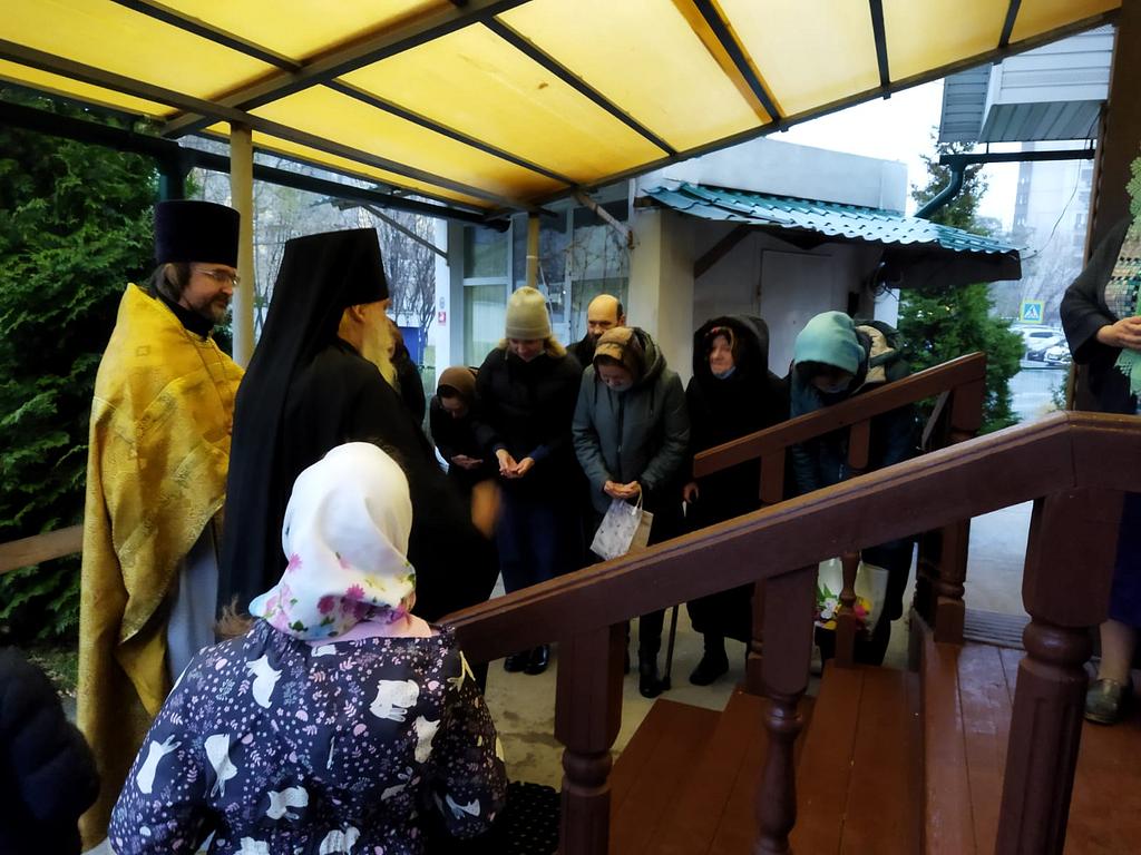 Его Преосвященству сослужили иерей Игорь Шаров, настоятель храма Святых Праведных Симеона Богоприимца и Анны Пророчицы в Черемушках и протодиакон Игорь Симонов, клирик храма святителя Николая Мирликийского в Бирюлеве.