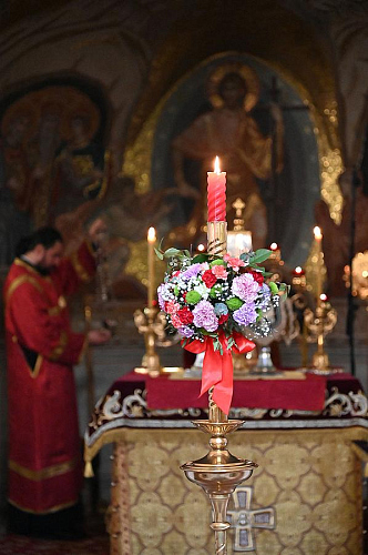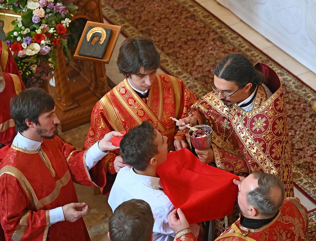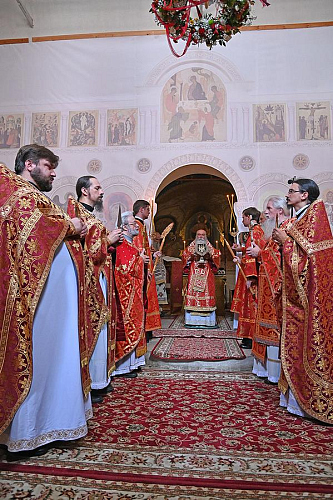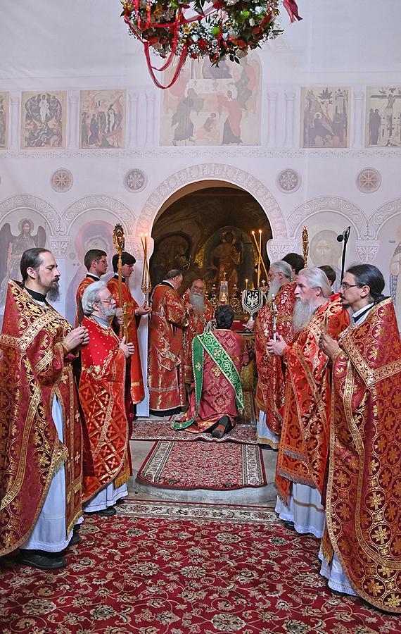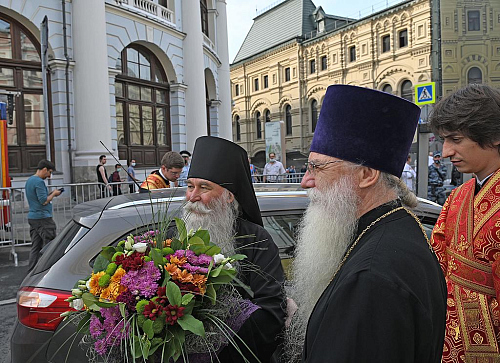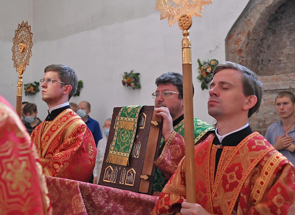 Преосвященным архиереям сослужили: протоиерей Андрей Речицкий, благочинный Иверского церковного округа, настоятель храма пророка Божия Илии на Новгородском подворье; протоиерей Вячеслав Шестаков, настоятель Патриаршего подворья храмов в Зарядье; протоиерей Игорь Осипенко и протоиерей Александр Курнасов, клирики храма пророка Божия Илии на Новгородском подворье; протоиерей Александр Ильяшенко, настоятель храма Всемилостивого Спаса б. Скорбященского монастыря; иерей Серафим Фарковец, клирик храма св. блгв. князя Андрея Боголюбского на Волжском; иерей Андрей Якубов, клирик храма пророка Божия Илии на Новгородском подворье; протодиакон Валерий Щеглов, клирик храма Воскресения Христова в Сокольниках; протодиакон Николай Платонов, клирик Богоявленского кафедрального собора; диакон Игорь Алексеев, клирик храма Благовещения Пресвятой Богородицы в Федосино.