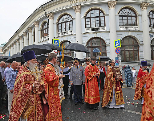 По окончании Божественной Литургии состоялся торжественный молебен на Лобном месте на Красной площади, который возглавил епископ Мытищинский Феофилакт. После молебна Преосвященнейший Владыка передал поздравление с праздником и благословение Его Святейшества, Святейшего Патриарха Московского и всея Руси, всем участникам праздничных мероприятий.