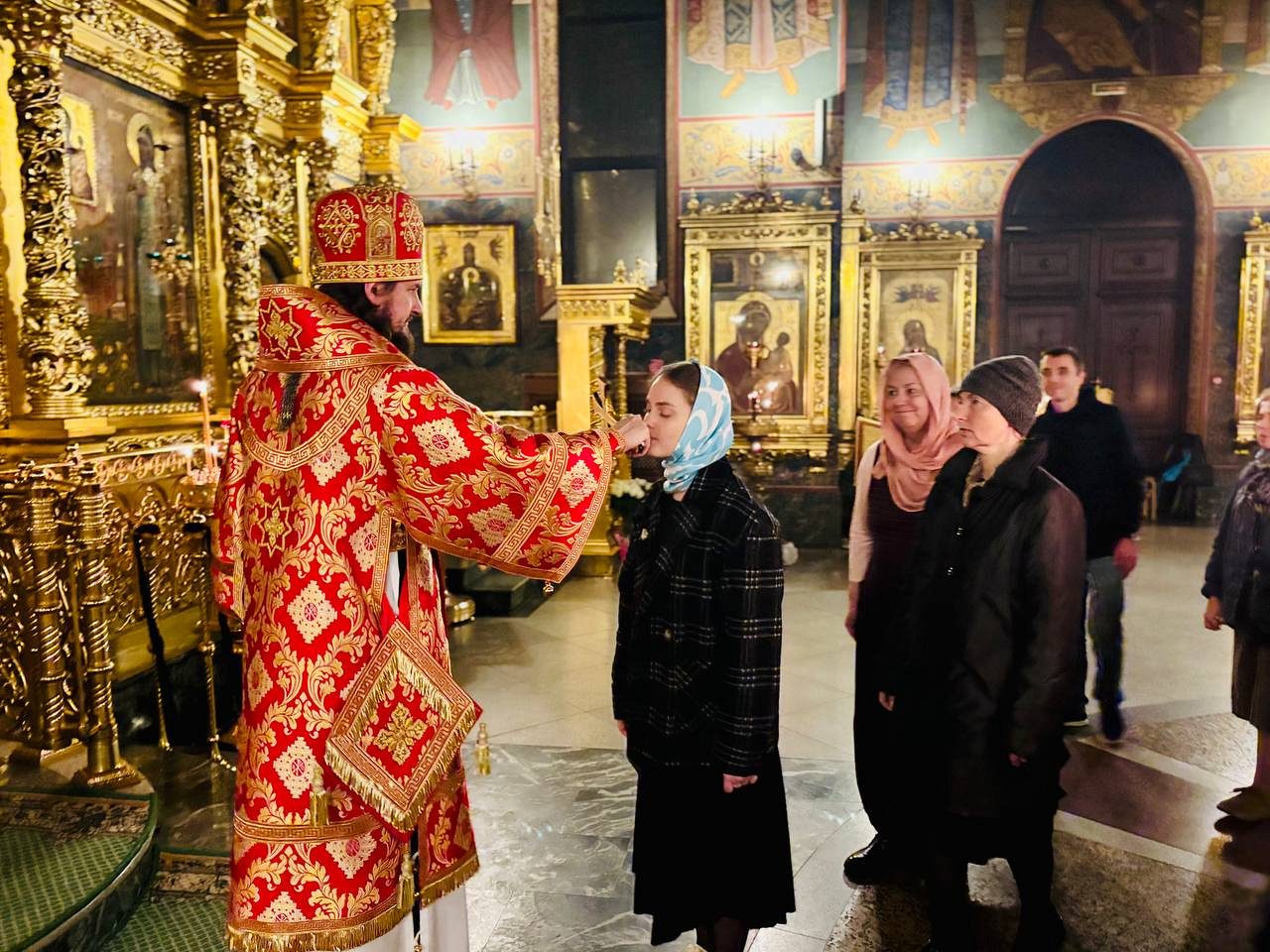 По окончании Литургии епископ Алексий сердечно поблагодарил прихожан за соборные молитвы и поздравил с Причастием Святых Христовых Таин.