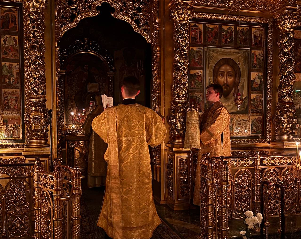 Богослужебные песнопения прозвучали в исполнении архиерейского хора храма преподобной Евфросинии Московской. Символ веры и молитву «Отче наш» соборно исполнили все присутствующие.