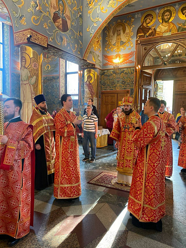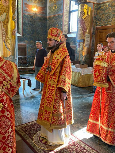 Его Преосвященству сослужил священник Александр Мохов. Диаконский чин возглавил диакон Константин Бабак.