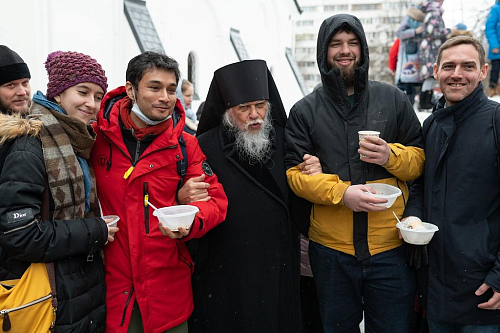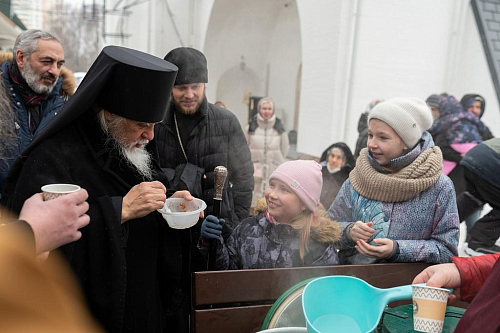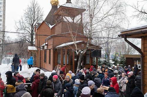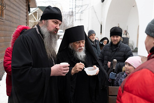 Для прихожан и гостей на территории храма было организовано праздничное угощение. Гостям была предложена каша, приготовленная на полевой кухне, и ароматный чай.