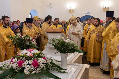 4 марта 2023 года, в престольный праздник священномученика Ермогена, Патриарха Московского и всея Руси, чудотворца, временно управляющий Юго-Западным викариатством Епископ Верейский Пантелеимон, викарий Святейшего Патриарха Московского и всея Руси, совершил чин малого освящения крестильного храма в честь преподобного Сергия Радонежского и возглавил первую Божественную Литургию в нем. Крестильный храм является приделом строящегося храма в честь Священномученика Ермогена.