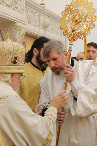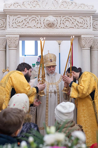 Также владыка Пантелеимон поздравил диакона Андрея Кириченко с рукоположением в сан, а настоятеля и прихожан с престольным праздником и освящением храма.