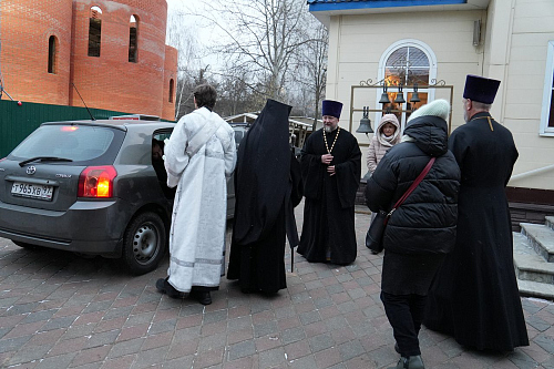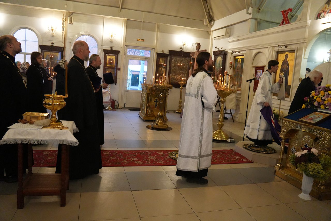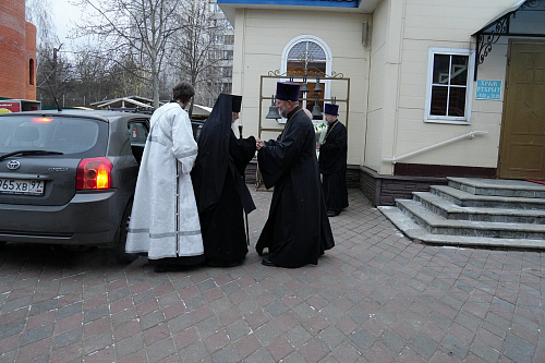 Преосвященному архипастырю сослужили: благочинный Параскево-Пятницкого благочиния протоиерей Анатолий Кожа, настоятель храма священномученика Серафима иерей Максим Глухих, клирик храма священномученика Серафима иерей Сергий Онг, клирик храма благоверного царевича Димитрия при ГКБ № 1 имени Н.И. Пирогова, секретарь Комиссии по больничному служению при Епархиальном совете г. Москвы иерей Михаил Голубков и другие священники.