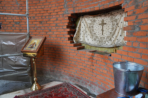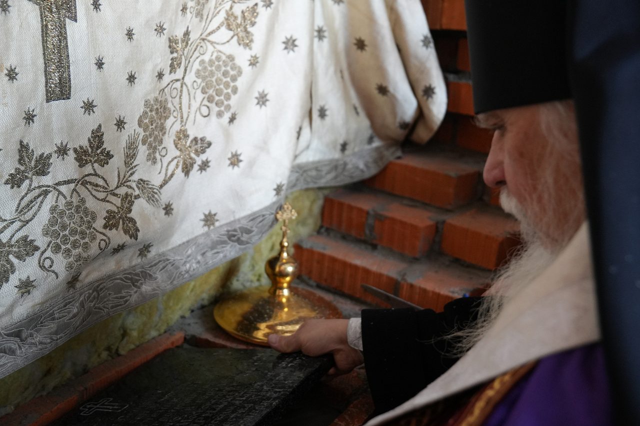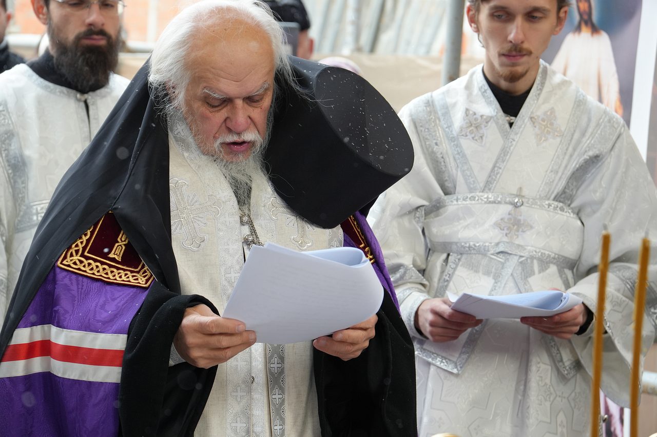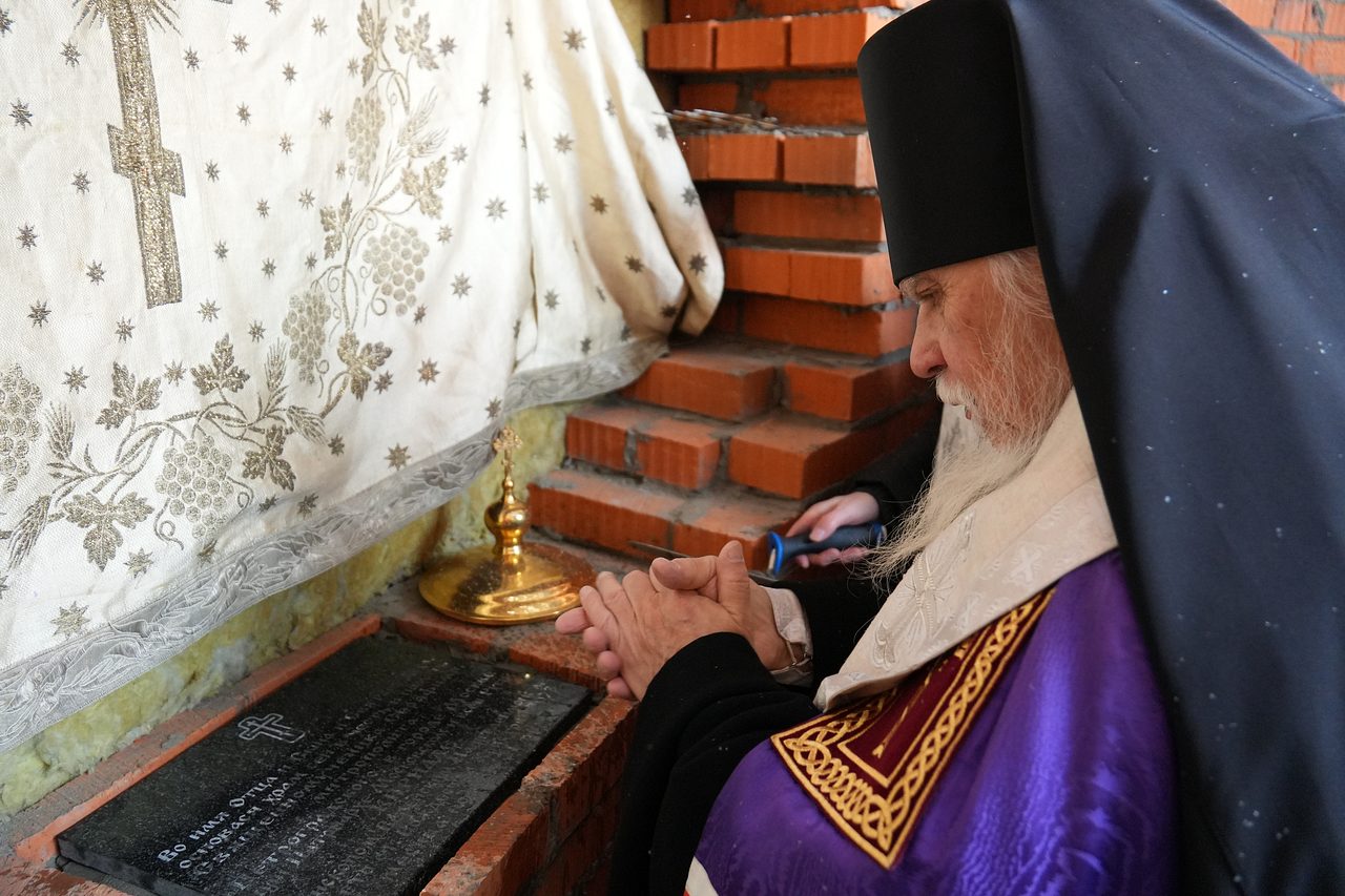 По окончании Богослужения епископ Пантелеимон поздравил верующих с освящением места закладки храма.