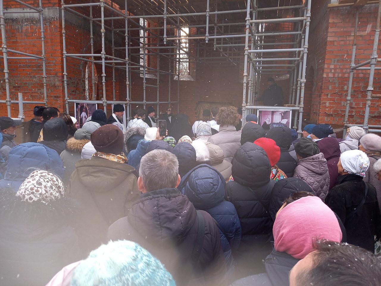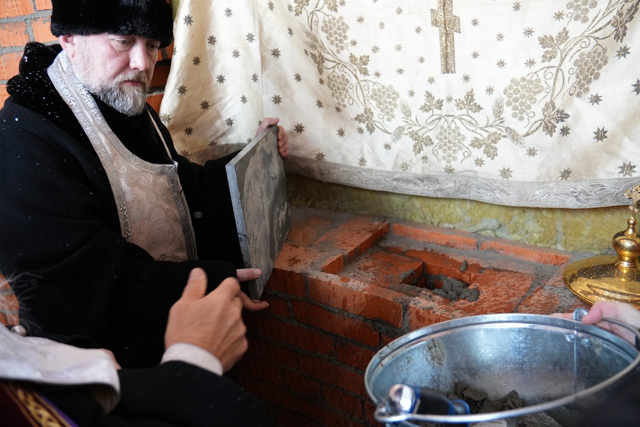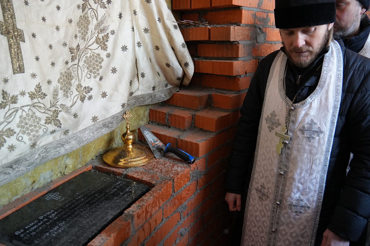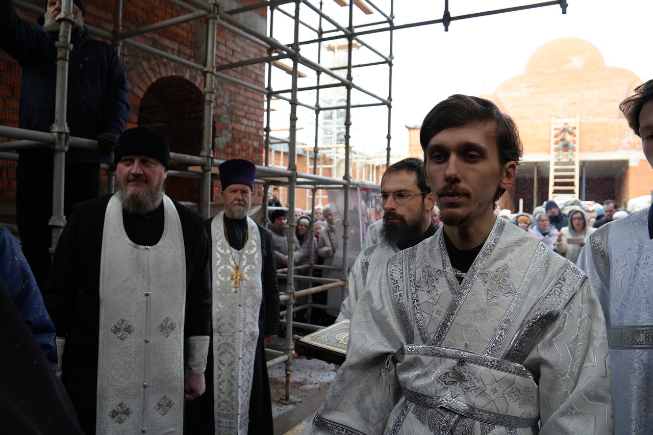 По окончании Богослужения епископ Пантелеимон поздравил верующих с освящением места закладки храма.