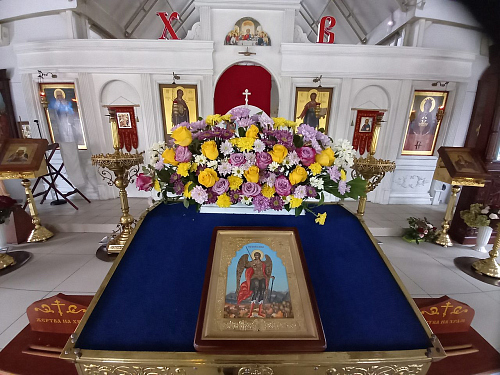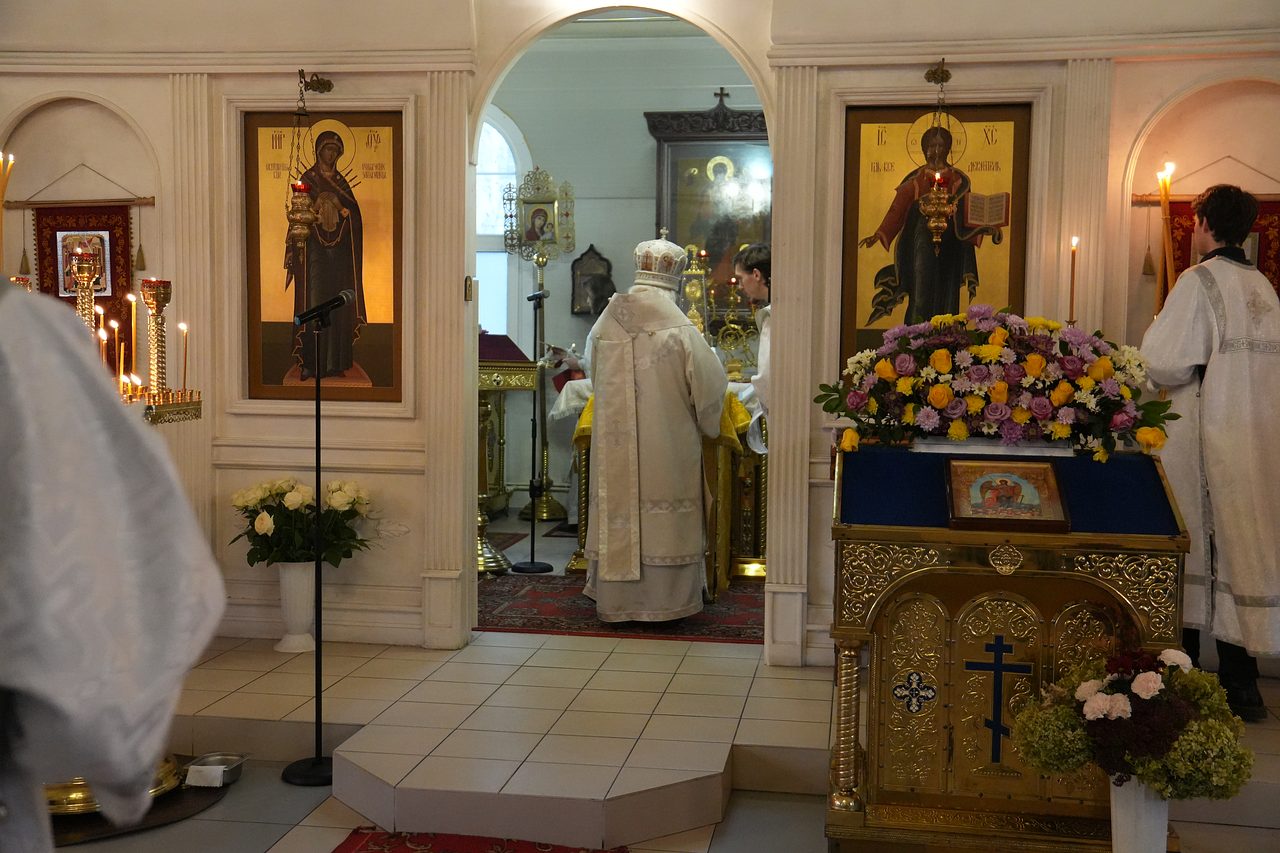 21 ноября 2023 года, во вторник Седмицы 25-й по Пятидесятнице, в праздник Собора Архистратига Михаила и прочих Небесных Сил бесплотных, временно управляющий Юго-Западным викариатством Епископ Верейский Пантелеимон, викарий Святейшего Патриарха Московского и всея Руси, совершил Божественную Литургию в храме священномученика Серафима, митрополита Петроградского г.Москвы.