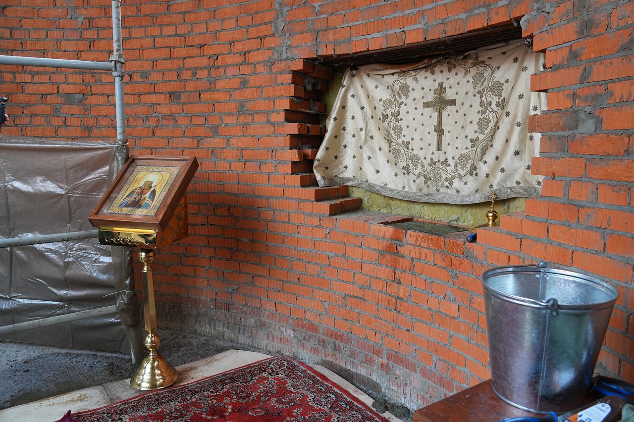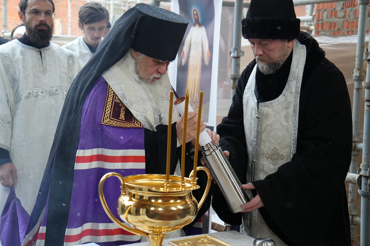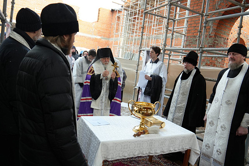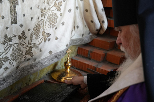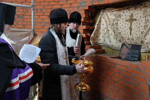 По завершении Божественной Литургии Владыка совершил чин освящения места закладки храма священномученика Серафима, митрополита Петроградского.